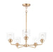 A modest frame of steel tubing gently bends to support a cluster of Clear Seedy bell-shaped glass. Similarly the bobeches and other metal accents echo that traditional bell shape creating an instant classic. An easy choice with transitional appeal, choose from a variety of complimentary finishes including matte Black, Heritage Brass or Satin Nickel.