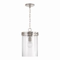 The Fuller Pendant for HomePlace adds contemporary style to any space. The sleek lines paired with clear glass and the Aged Brass finish bring mid-century sophistication.