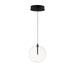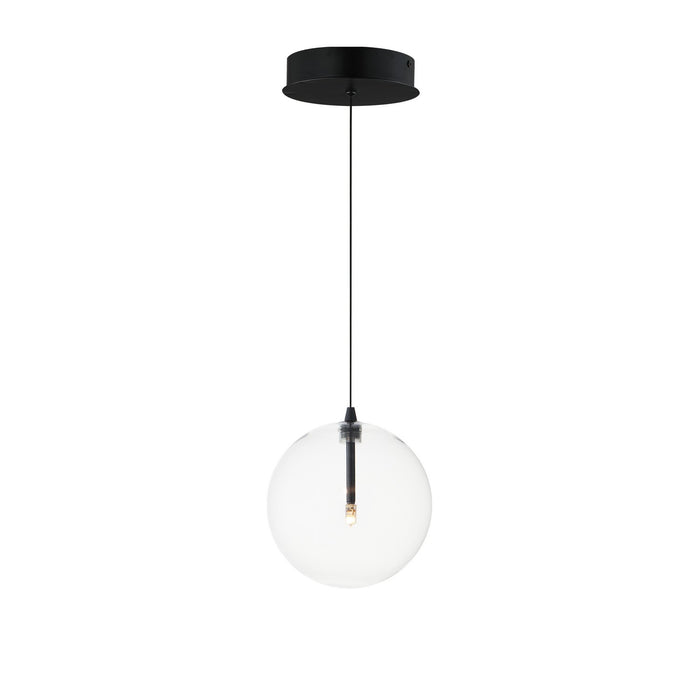 An airy configuration of Clear blown glass globe shades in various sizes suspend on thin low voltage wires. Thin tubes finished in Black or Gold descend into the center of the globes where a small G4 LED lamp provides a spark of light.