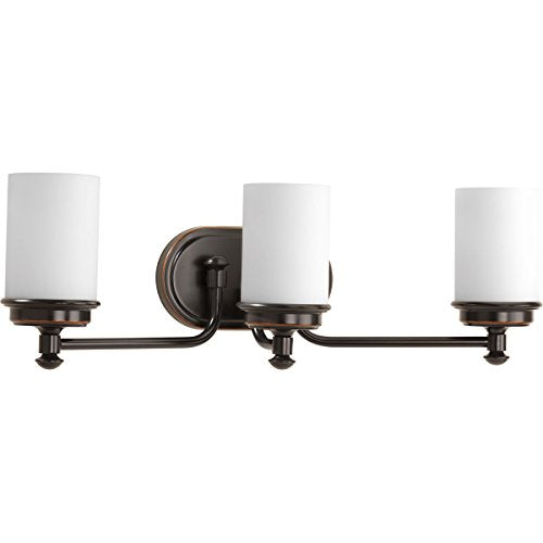 Progress P300014-139 Glide Collection Three-Light Rubbed Bronze Etched Opal Glass Coastal Bath Vanity Light
