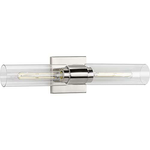 -- Application: Embrace minimalist simplicity with the Clarion Collection 2-Light Brushed Nickel Clear Glass Modern Bath Vanity Light ideal for any entryway, hallway, foyer, bedroom, sitting room, or bathroom.