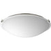 A 16" domed, linen finish glass diffuser is discreetly supported from Brushed Nickel metal fittings and encloses an energy-efficient light source. 1,200 lumens 90+ CRI, 3000K.