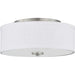 Harkening back to a simpler time, the Inspire Collection freshens traditional forms with flowing lines. The LED flush mount fixture features an etched glass diffuser with a summer linen shade finished with Brushed Nickel details. This fixture is suitable for a variety of design styles, including Modern, Traditional and Farmhouse and the simple design is a perfect complement to a variety of fixture collections.