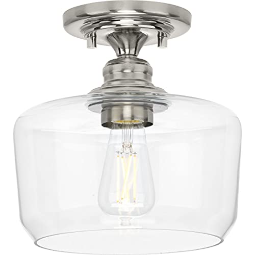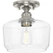 Progress P350214-009 Aiken Collection One-Light Brushed Nickel Clear Glass Farmhouse Flush Mount Light