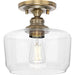 Progress P350214-163 Aiken Collection One-Light Vintage Brass Clear Glass Farmhouse Flush Mount Light