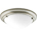 This Progress Lighting ceiling fixture with a Brushed Nickel finish and a satin white glass bowl creates a clean and contemporary look in your home. Featuring a simple design, the close-to-ceiling light is suitable for rooms with both high and low ceilings. Two-light close-to-ceiling fixture with satin white glass is perfect for residential and commercial applications.
