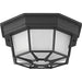 One-light 8-3/8" LED flush mount with etched glass surrounded by a die-cast aluminum frame. Ideal for indoor and outdoor applications. Black finish.