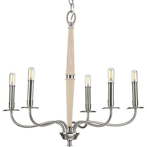 Progress P400199-009 Durrell Collection Five-Light Brushed Nickel Coastal Chandelier Light
