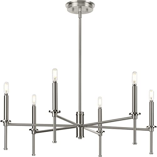 Progress P400294-009 Elara Collection Six-Light New Traditional Brushed Nickel Chandelier Light