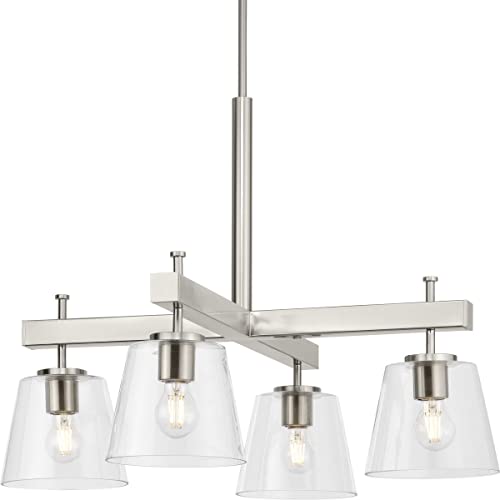 Progress P400299-009 Saffert Collection Four-Light New Traditional Brushed Nickel Clear Glass Chandelier Light