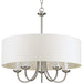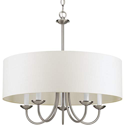 Progress P4217-09 Drum Shade Collection Five-Light Brushed Nickel White Textured Linen Shade Farmhouse Chandelier Light
