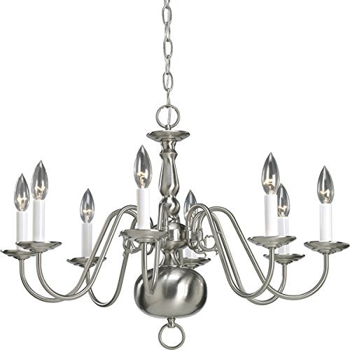 Progress P4357-09 Americana Collection Eight-Light Brushed Nickel White Candle Traditional Chandelier Light