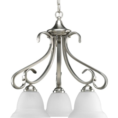 Progress P4405-09 Torino Collection Three-Light Brushed Nickel Etched Glass Transitional Chandelier Light