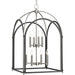 Westfall is a distinctive combination of arching elements that create a dramatic soaring frame. A dual-tone finish of Graphite with Brushed Nickel highlights the distinctive form and provides rich contrasting surround for a classic candelabra cluster. Metal fittings add a touch of elegance and dimension to further enhance the classic form of this eight-light large foyer pendant..