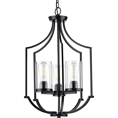 Manifest a swoon-worthy lighting experience with the stunning blend of the modern and traditional styles in this one-of-a-kind Lassiter Collection Three-Light Matte Black Foyer. Square tubing with clean, sharp angles is coated in a beautiful matte black finish that demands your attention. Striking vintage light sockets boast their bold yet simple demeanor as they hold clear glass shades to complete this statement-making light fixture.