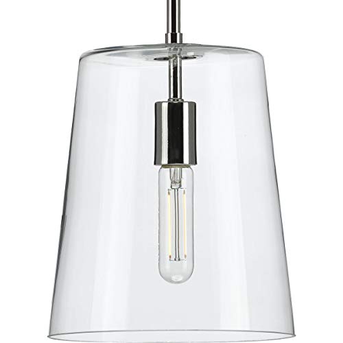 Progress P500241-104 Clarion Collection One-Light Polished Nickel Clear Glass Coastal Pendant Light