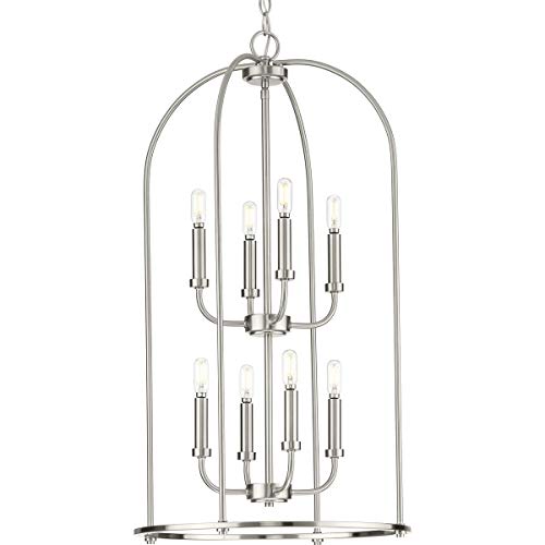 -- Application: Complement your interiors with the Leyden Collection 8-Light Brushed Nickel Farmhouse Foyer Pendant Light ideal for any foyer, dining room, stairway, or entryway.
