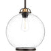 Chronicle one-light pendants add visual interest and are ideal for commercial-style home kitchens or vintage dining areas. A metal trim accent ring adds a finishing touch the spherical glass globe. Clear seeded glass with an Antique Bronze frame.