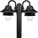 Two-light post mount plastic fixture with prismatic acrylic shade in a textured Black finish.