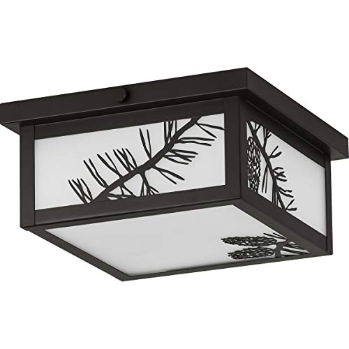 Infuse the beauty of pine trees into your home decor with this nature-inspired outdoor flush-mount. An antique bronze frame is adorned with intricate, forest-inspired designs that capture the beautiful essence of the wild outdoors. Gorgeous etched seeded glass panes serve as a gentle backdrop for the carefully crafted silhouettes to complete the rustic design.