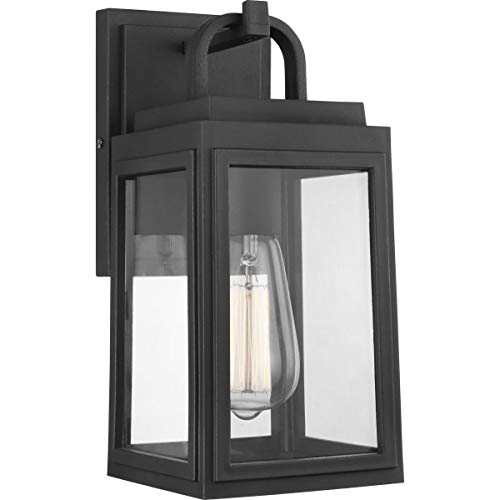 Partner timeless elegance with a pinch of coastal vibe with this wall lantern. A beautiful black square frame crafted from corrosion-proof composite polymer material features a half loop on top of the structure. The light fixture's clear glass panes allow the lantern to complement other farmhouse and coastal decor for an overall beautiful, welcoming look. DURASHIELD by Progress Lighting is built to last. Constructed from a composite material with UV protection, DURASHIELD holds up even in the harshest weather conditions. This high-performance finish has a 5-year warranty and is resistant to rust, corrosion, and fading.